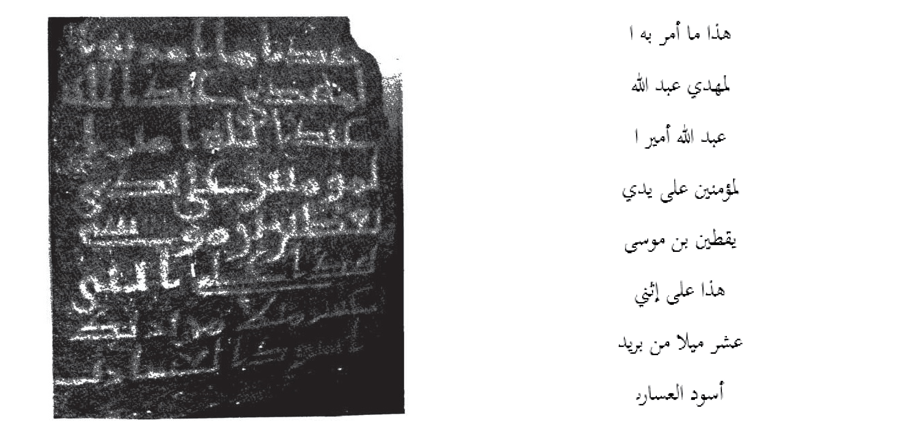 The image below is of a recent archaeological find unearthed from the Arabian Desert[2]. A milestone erected in the reign of the first Abbasid Caliph al-Saffah (r. 132-136) recording the official distance of a section along the pilgrimage route from Kufa to Mecca.
