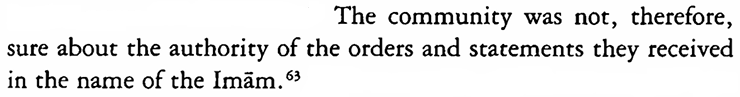 Much has been made about the ‘disputes’ that usually erupted after the death of an Imam; but, as I have argued in another article,[3] the emergence of multiple claimants was unavoidable and the Imamites were supposed to use certain ‘criteria’ to filter out pretenders and coalesce around the true successor.